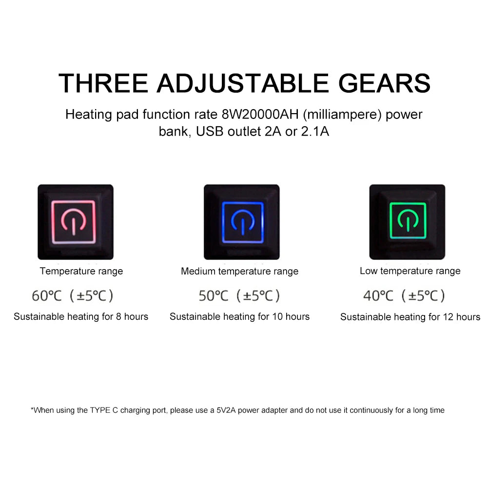 - Flexible Power Options: USB and Type-C interfaces compatible with your own power bank for on-the-go warmth (power bank not included).
