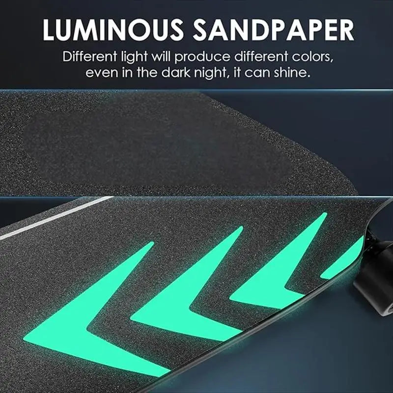 【Unique Design】Caroma electric skateboard design conforms to ergonomic principles, can perfectly fit the contour of the foot, increase friction. In addition, the frosted luminous coating design increases the texture of the skateboard, making your longboard present a colorful and cool dynamic fluorescent effect in a dark environment, while improving the safety of night endurance