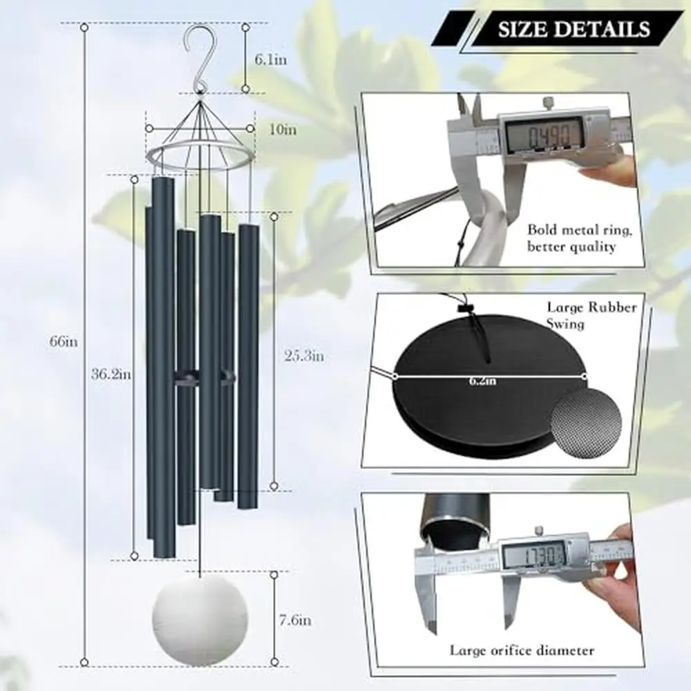 Deep Tone 66 Inch Outdoor Wind Chimes with 6 Tuned Aluminum Tubes Relaxing Melodies Memorial Sympathy Gifts Garden