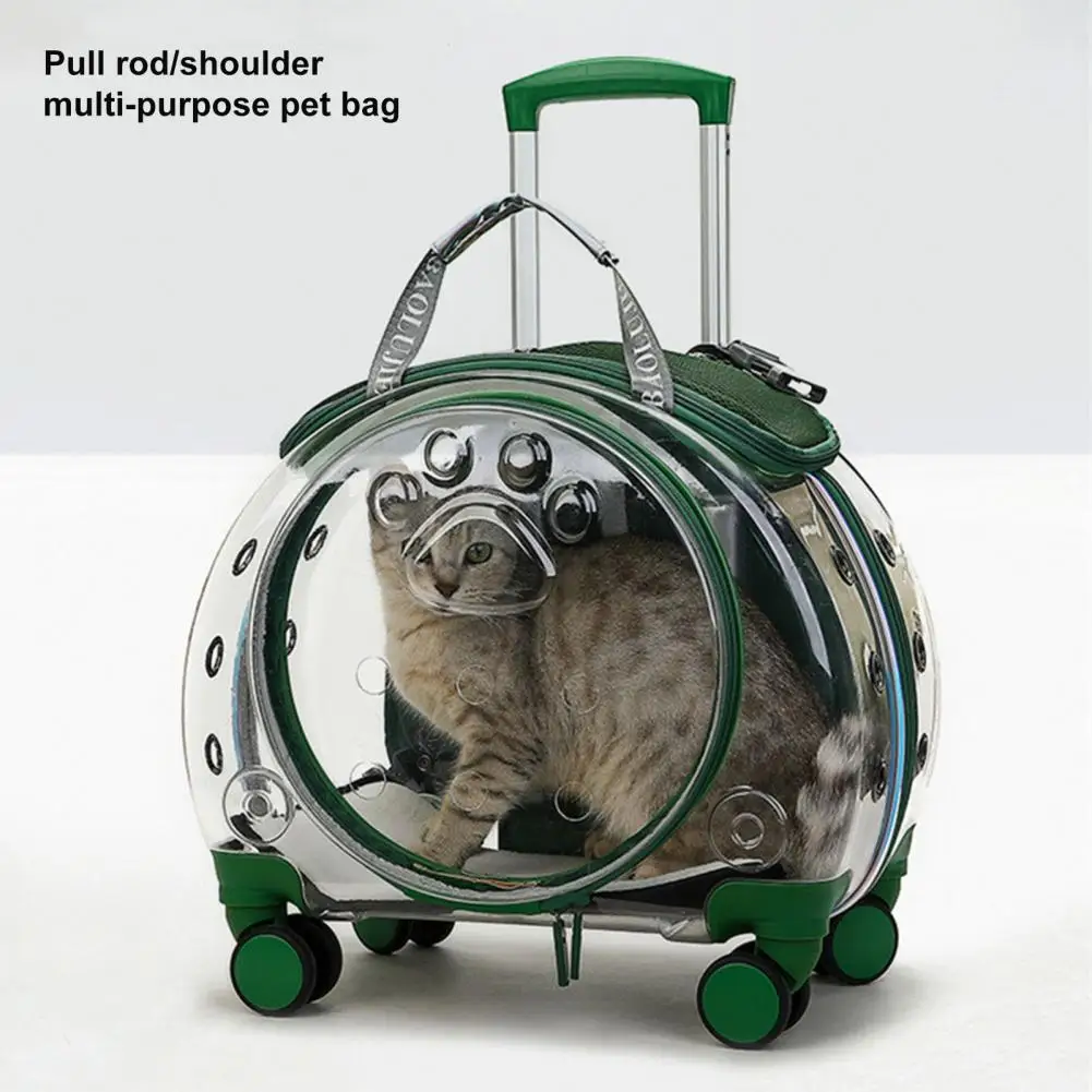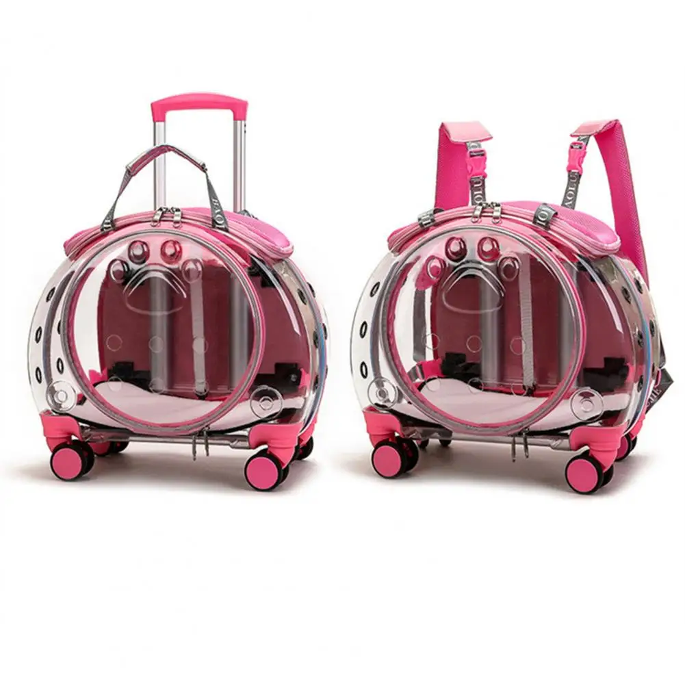 Pet Trolley Case Clear Ventilation Holes Silent Wheels Convenient Portable Cats Dogs Backpack for Travel