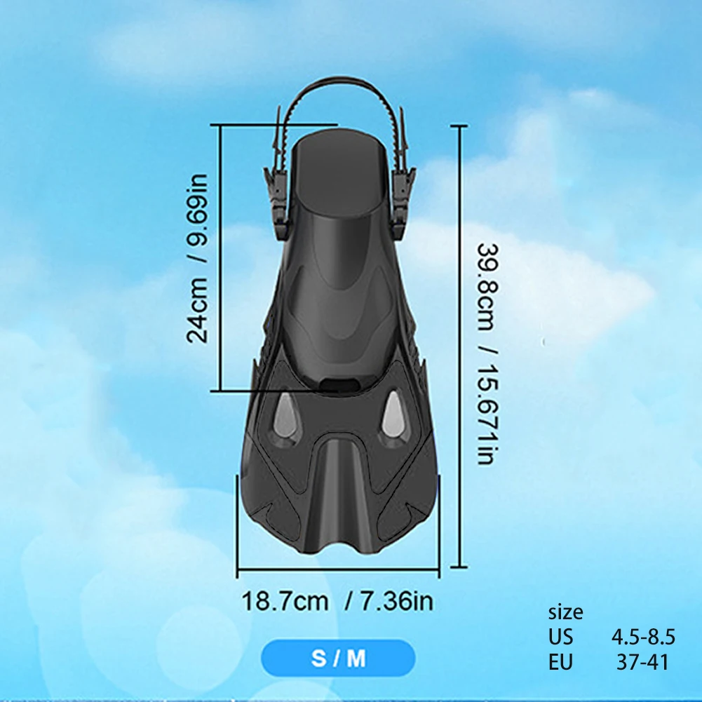 ![]() Snorkel Fins Swimming Flippers Adjustable Buckles Scuba Diving Shoes Non Slip Snorkeling Flippers for Snorkeling Diving Swimming Features: 1. Adjustable Fit Design: These snorkel fins feature adjustable straps, allowing you to easily set and maintain the fit. This customization ensures a secure and comfortable experience, adapting to different foot sizes for optimal performance in the water. Specification: Origin: Mainland China Main material: PP+ TPR Suitable size (adjustable within a certain range) S/M is suitable for sizes 37-41; L/XL is suitable for sizes 42-47 S/M size: 398*187mm/15.67*7.36inch L/XL size: 412.00x187.00mm/16.22x7.36inch Note: ![]() 1 Pair x Snorkel Fins |
