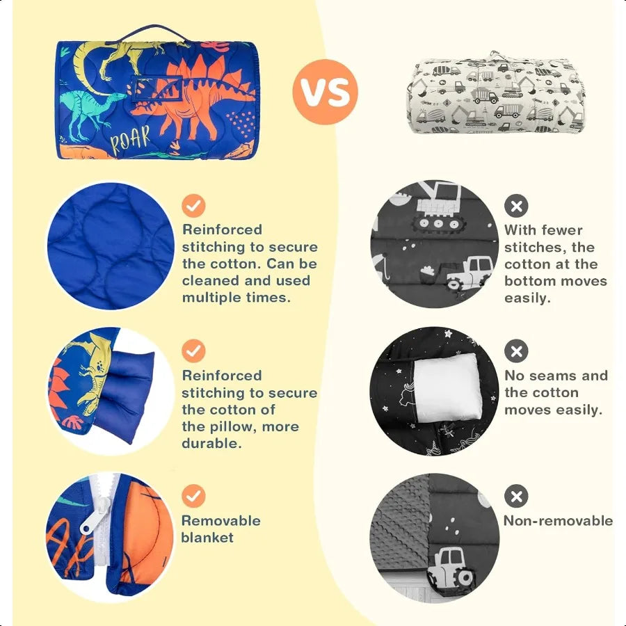 Toddler Nap Mat Extra Large 5529 for 27 Years Cotton Daycare Nap Mats with Removable Minky Blanket and Pillow Boys Sleeping Mat